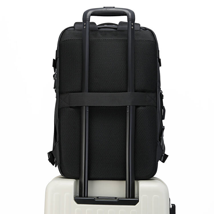 ✈️ Fascia per Trolley: Una comoda fascia posteriore permette di agganciare saldamente lo zaino alla maniglia del tuo bagaglio principale.