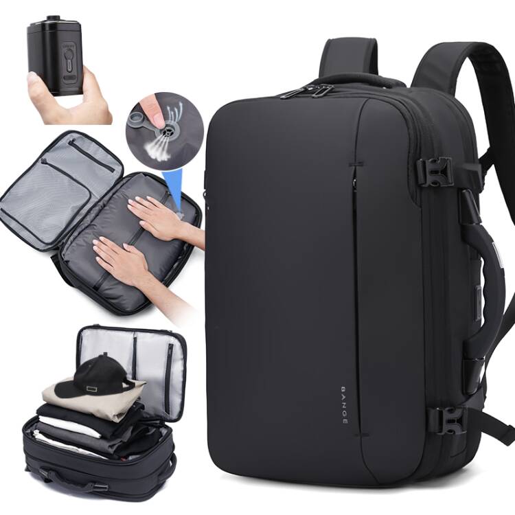 L'innovazione Bange al suo massimo. Questo zaino non è solo un bagaglio: è il tuo assistente di viaggio definitivo. È l'unico zaino che combina una bilancia digitale integrata nella maniglia, un sistema di compressione sottovuoto per i vestiti e una cerniera di espansione che lo trasforma in un trolley.