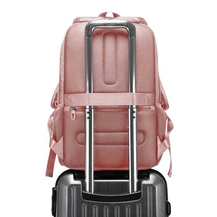 ✈️ Fascia per Trolley: Un partner di viaggio ideale. La comoda fascia posteriore permette di fissare saldamente lo zaino alla maniglia del tuo trolley.